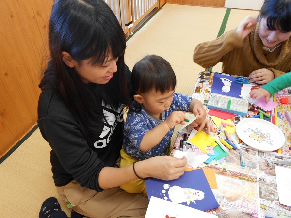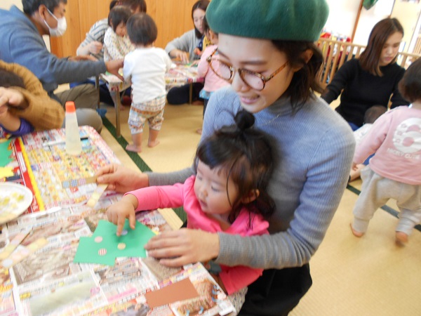 シールをペタぺタ♪上手に貼っていましたよ♪