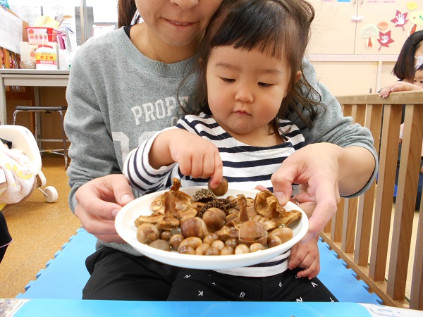 「どれにしようかな~」と、じっくり木の実を選びます。