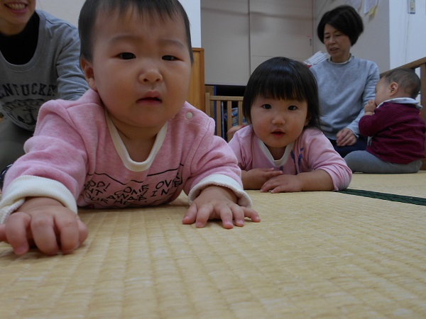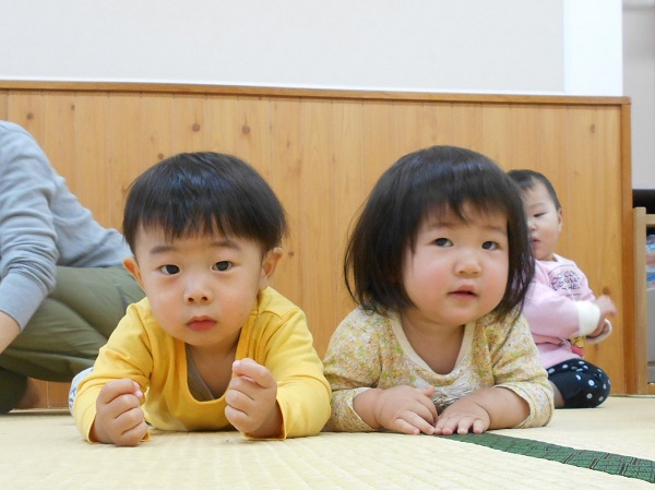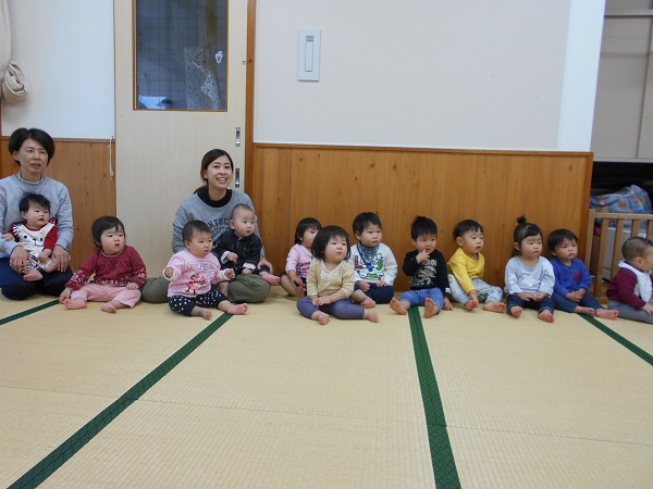 始まる前は、壁さんぺったんで上手に待つことができるいちご組さん■