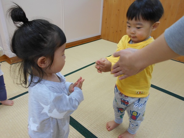 メダカの音楽が鳴ると、お友だちと向かい合って「おはなし♪おはなし♪」