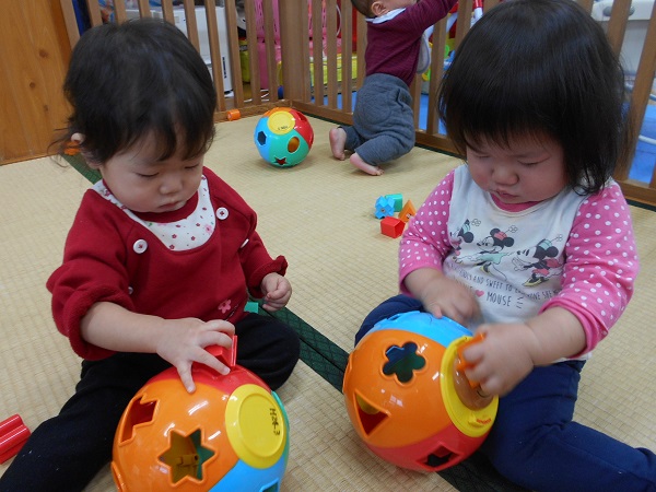 1歳頃のお友だちは、型はめ遊びに夢中☻