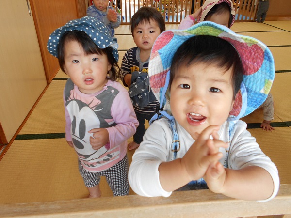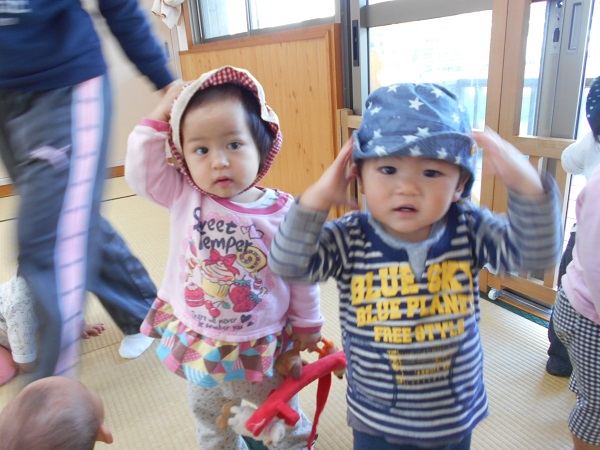 帽子を自分で被ることができ、「見て、見て~!」と嬉しそうな笑顔✨