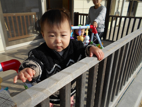 小さいお友だちは、テラスまで出てみました。