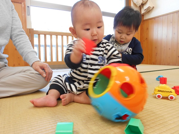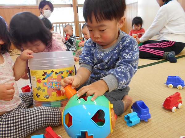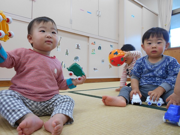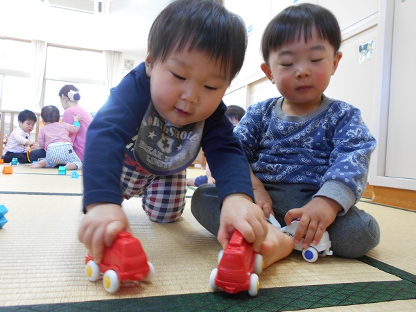 お部屋であそんだよ☆りんご組さんのおもちゃで遊びました♬いつもと違うおもちゃに興味津々!「これはどこに入れるのかな~?」車のおもちゃを両手に持って嬉しそう■✨「ぶっぶ~■!!」と車を走らせていましたよ■今日もとっても可愛い■いちご組さんでした■■