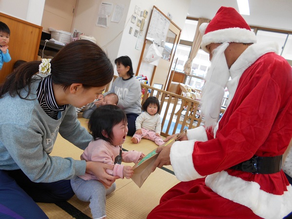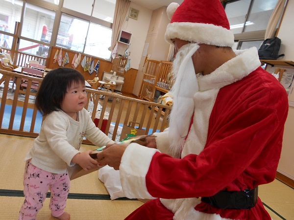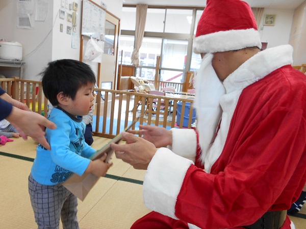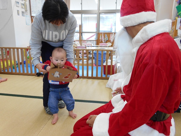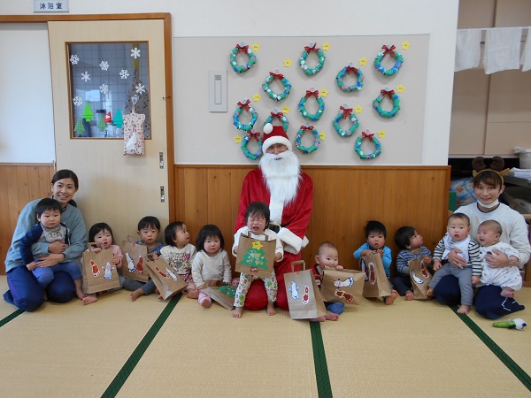 ☆サンタさんありがとう☆誕生会とクリスマス会がありました。12月生まれのお友だちおめでとう■拍手でおいわい✨✨先生によるパネルシアター楽しかったね♡お部屋で遊んでいると...なんとサンタさんが登場!!一人ひとりにプレゼントをくれました■最後は、サンタさんと一緒に記念撮影■✨サンタさん、素敵なプレゼントをありがとう♡