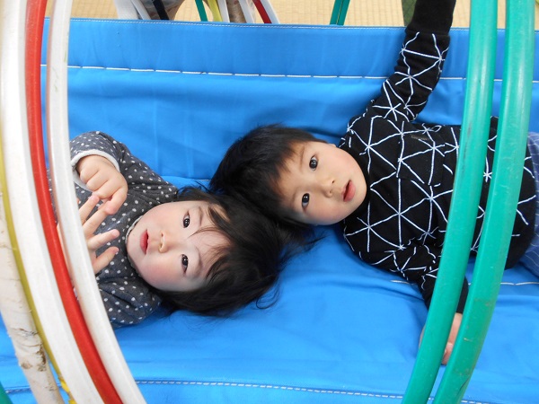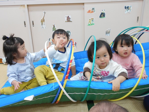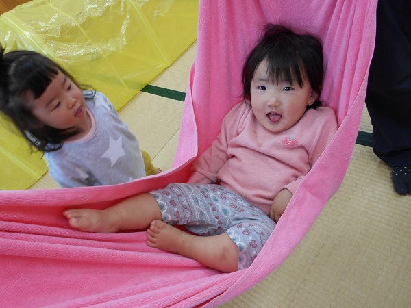 ゆらゆらバアバア★お部屋の中でたくさん遊んだよ■マットとフラフープのユラユラ遊びが大好き!!みんなで一緒に「おーい✋」天井を見上げて...ゆらゆら気持ちがいいなぁ■ごろん♬してニッコリ✨タオルケットにくるまれてユラユラしてもらったお友だちも☆トンネル遊びも楽しいね☻「ばぁ!」と笑顔が輝きます✨とっても楽しかったね♬また遊ぼうね!!