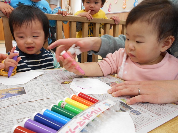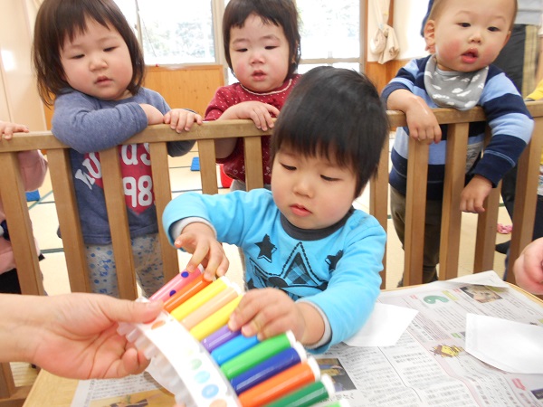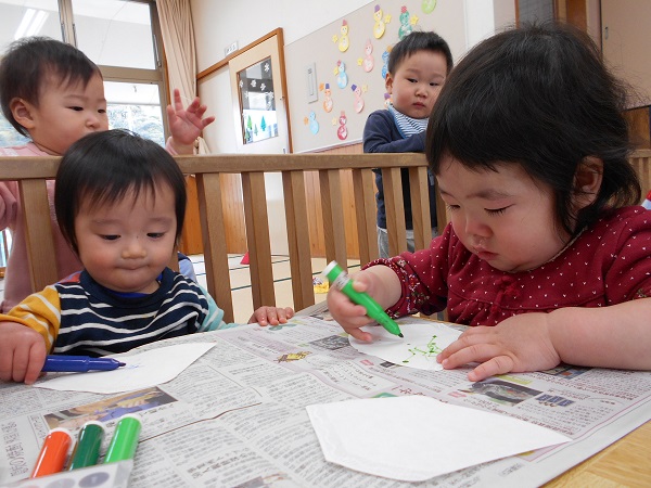 2018年02月19日 じろじろ♪今日はお部屋でひなまつり製作をしました■好きな色のマーカーを選んで・・・「どの色にしようかな~?」じろじろ~♬真剣な表情で描いていた子どもたちでしたよ!「わたしはピンク色■」どんな作品になるのかな?お楽しみに✨