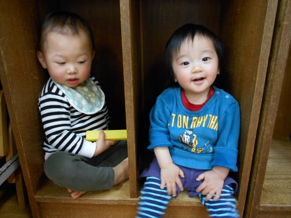 2018年03月20日 みかん組のお部屋で♪みかん組さんのお部屋で遊びました。おもしろいおもちゃがたくさんあって、楽しいね♪積み木に夢中のお友だち☆上手に積み重ねていますね!!高い高~い!お友だちに積み木を「どうぞ!」と手渡す姿も...とっても優しいですね♡いつもと違うお部屋が楽しくて、小さいお友だちも思わずにっこり☻みんなで並んでロッカーに入ってみました☆また、みかん組さんのお部屋で遊ばせてもらおうね♪