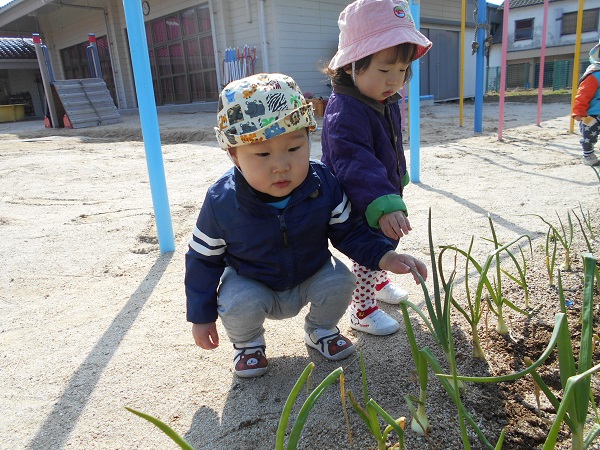 これは何だろう?と園庭で育てている玉ねぎに興味津々なお友だちもいましたよ✨