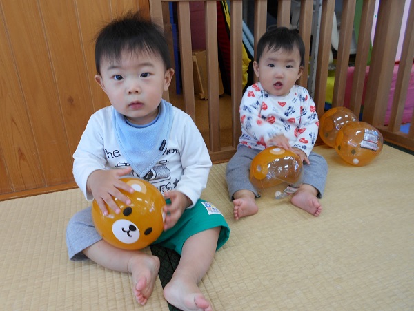 お部屋では新しいボールでも遊びました♪