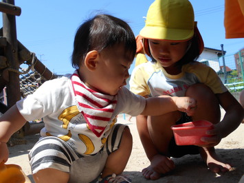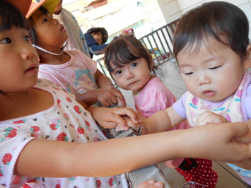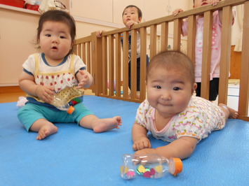 2017年06月05日 テラスで・・・♪今日は幼児園庭側のテラスに出て遊びました。お兄さん・お姉さんが、たくさん話かけてくれましたよ☆お部屋でも楽しそうに遊んでいます♪今日もとっても笑顔が可愛い♡いちご組さんでした♡