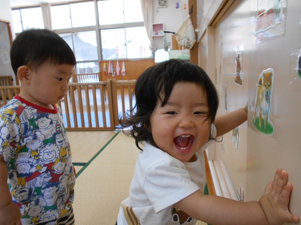 2017年07月10日 初めてのプール遊び♪温水プールに入り、ボールを持ってニッコリ!うさぎ組さんのプールにも入らせてもらいましたよシャワーをしてさっぱり!ミルクもよく飲みますよ♪部屋では、お友だち同士で追っかけっこしたり、動物を指さして遊びましたよ♪