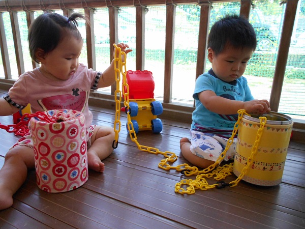 2017年07月31日 テラスであそんだよ☆テラスですべり台♪登って、滑ってを繰り返して、楽しそうにあそんでいましたよ♡チェーンのおもちゃも、箱に入れたり、出したり・・・真剣な表情です・・・♪今日も可愛い笑顔のいちご組さん♡明日もいっぱいあそぼうね!
