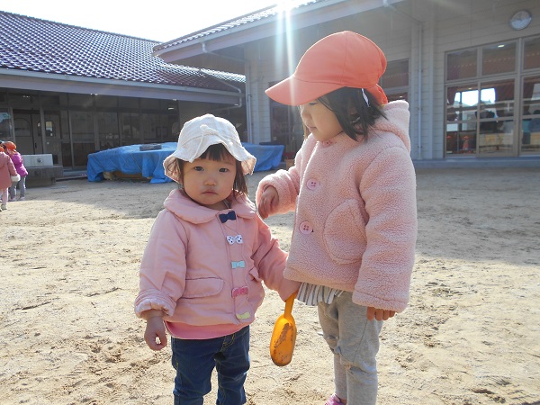 園庭で遊んでいたばす組のお姉さんが手伝いに来てくれました!