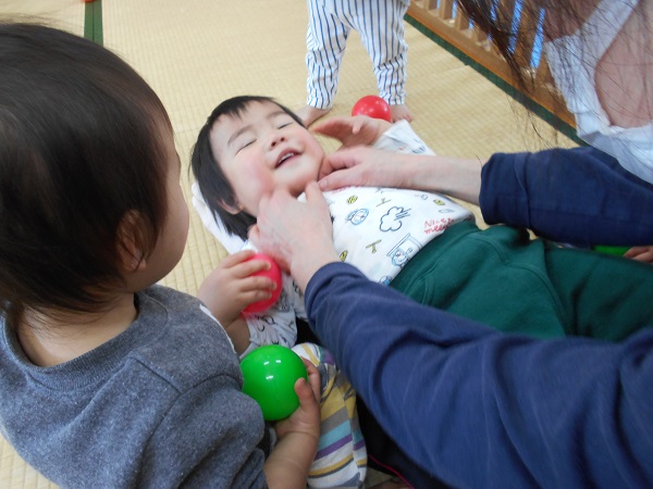 お部屋では大好きな先生とこちょこちょ遊びを楽しみました♪