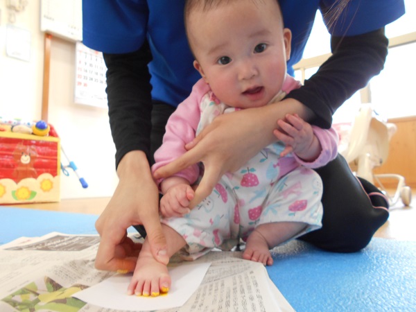 2018年04月18日 足型ぺったん!今日はこいのぼりの製作で、初めての足型をとりましたよ!足の裏に絵の具をぬりぬり...♪ちょっぴりドキドキしながら、ぺったん!うわあ~~~!!!と驚くお友だちも♪小さくてかわいいこいのぼりができそうですよ~!お楽しみに☺そのあとは、部屋で好きな遊びを楽しみました。明日もたくさん遊ぼうね♪