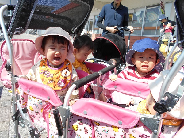 2018年04月19日 散歩に行ったよ!いちご組に入って2回目の散歩に出かけました!いつもと違う場所に涙が出るお友だちも( ́;ω;`)散歩車に揺られてユーラユラ✨散歩車の揺れでウトウトしちゃう子も・・・(-_-)zzz久しぶりのお散歩楽しかったね☺また行こうね!!明日も晴れるといいな~☀