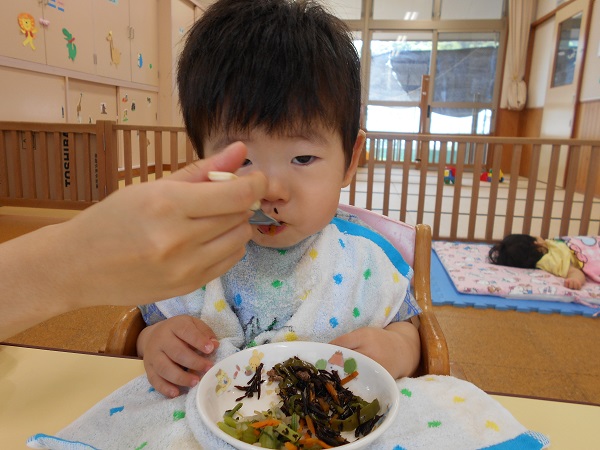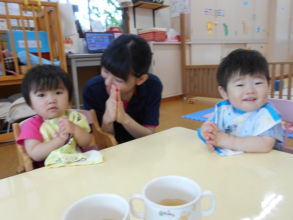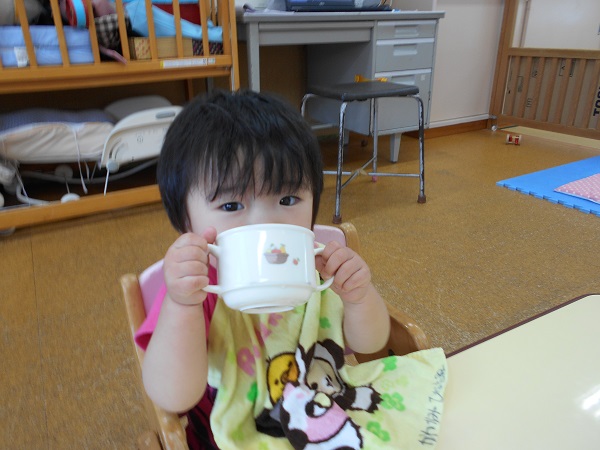 2018年06月26日 美味しいご飯の時間☆みんなで一緒に「いただきます■」まずはお茶を飲みます♬上手に自分で飲めるようになりました✨大きなお口を開けて、「あ~ん!!」美味しくてこの笑顔♡今日もモリモリ食べましたよ♬
