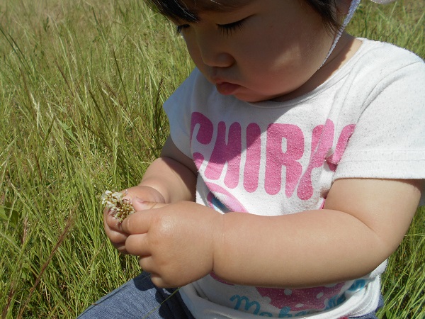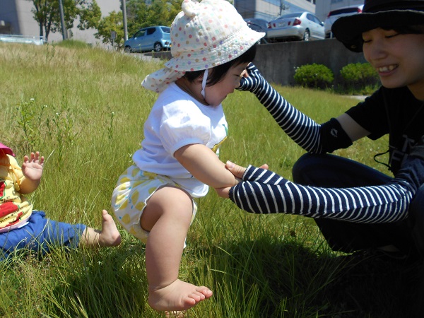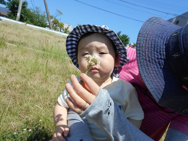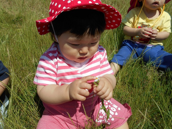 2018年06月01日 お散歩に行ったよ!あすてらす公園までお散歩に行ってきました☀今日は暑いね!!原っぱに座ると、さっそく草や花をちぎってみるいちご組さん!!きれいなお花だね■あっ、何か見つけたのかな?こっちのお友だちは、あんよの練習を頑張っていますよ✨「いっちに、いっちに!」来週もたくさん遊ぼうね☺