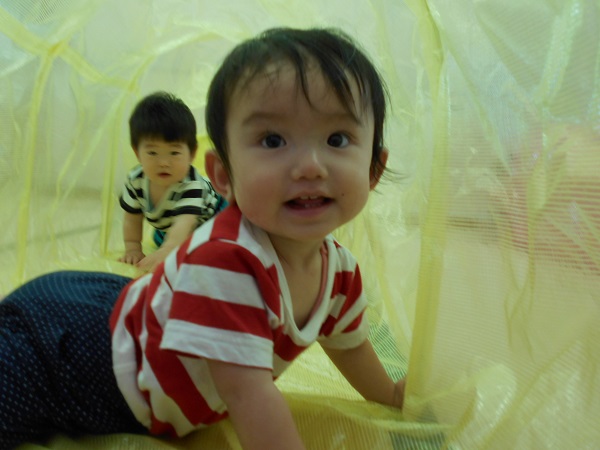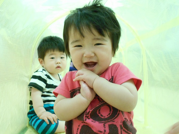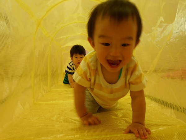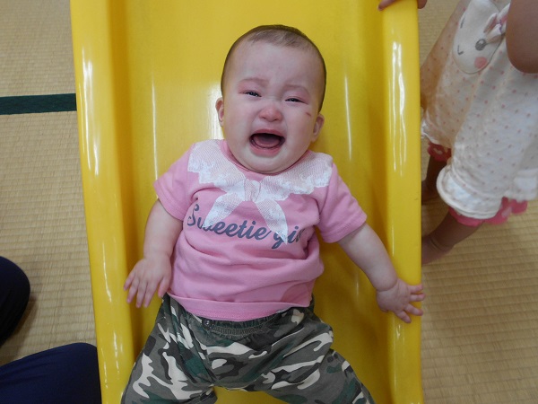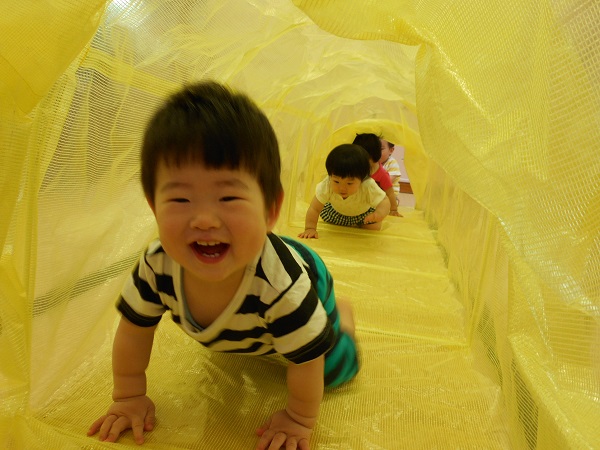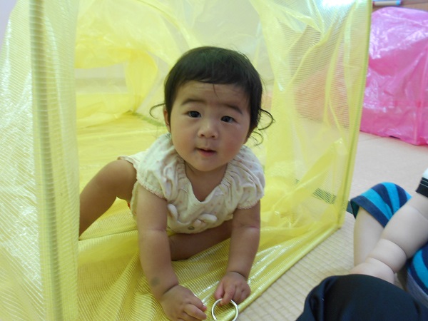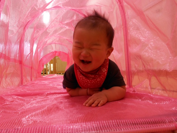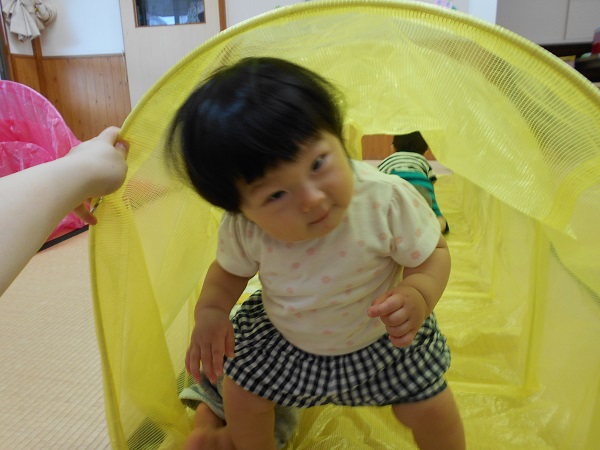 2018年06月06日 にこにこ笑顔!今日はトンネルとすべり台で遊びました!興味津々でトンネルの中をのぞいてみるいちご組さん♪はいはいでどんどん進んでいきますよ✨歩いて通ろうとするお友だちもいましたよ!おっとっと~!トンネルの反対側にいる先生を見つけて、大笑いです❤初めてのすべり台では、驚いて涙が出たお友だちも...!楽しくて、手をパチパチ叩いて大喜び!笑顔がとってもかわいい、いちご組さんです☺❤