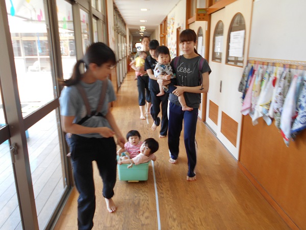 お外で遊ぶ前に、風水害の避難訓練がありました。