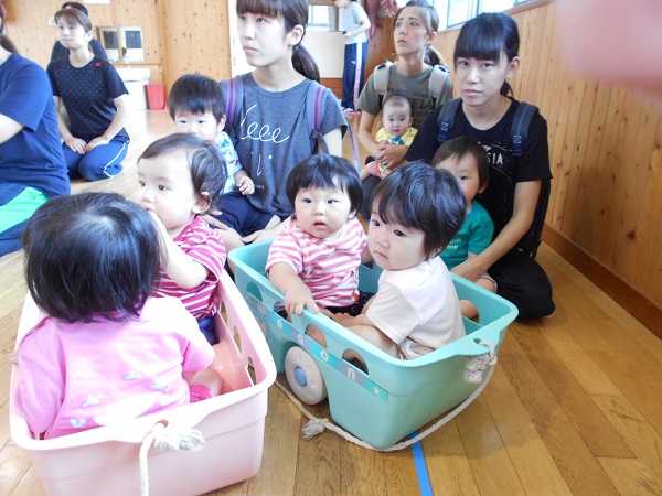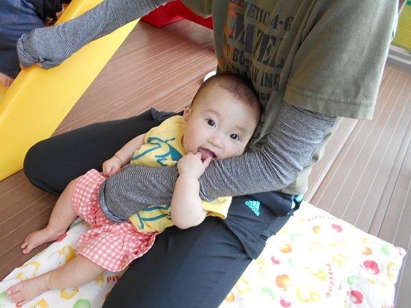 保育者の膝でくつろいでまったりとくつろいだり♡