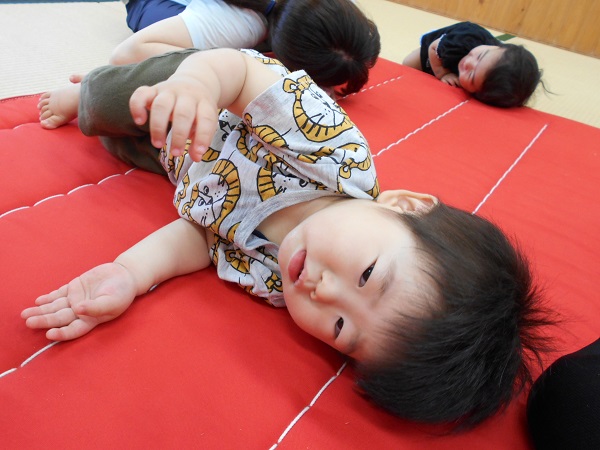2018年06月19日 ゴロゴロ☆今日はマットで遊びました!!保育者がマットを敷くと・・・ゴローンと寝っ転がったり、座ったりする子どもたち☺✨マットふかふかだね~こちらでは、はいはいやあんよの練習をしている子も!!頑張れー☆ゆったりと子どもたちと関わることができました♡明日もたくさん遊ぼうね!