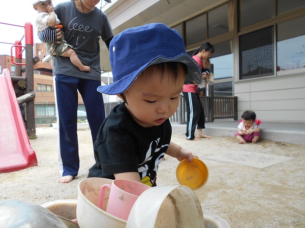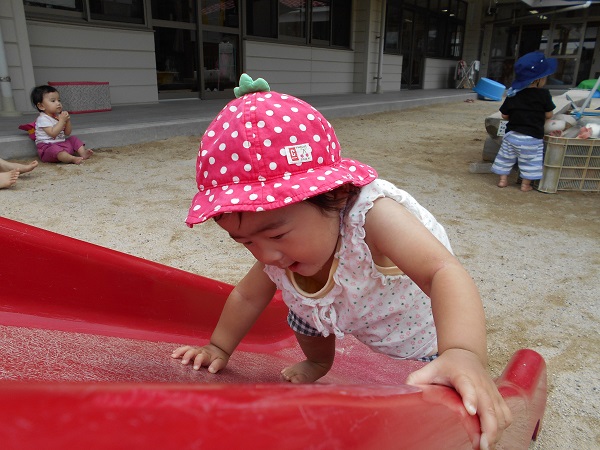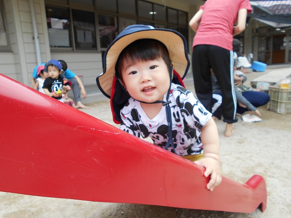 2018年06月21日 おそと☆幼児園庭で遊びました♬いち・に!いち・に!たくさん歩けるようになりました☆お砂を触ったり・・・「どれにしようかな~?」と玩具を選んだり・・・興味津々!で遊ぶ子どもたちです☺すべり台も大好き■ないちご組さん!「よいしょ!よいしょ!」と登っていましたよ。みんなで並んで「ハイ!チーズ■✨」明日も元気いっぱい遊ぼうね!