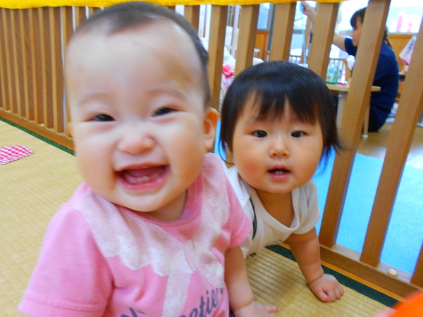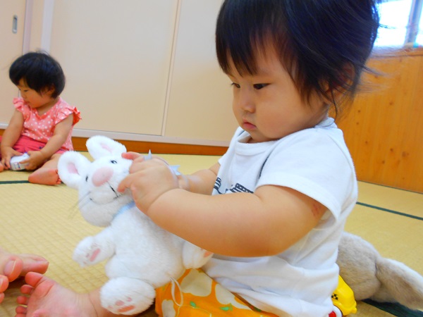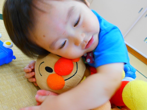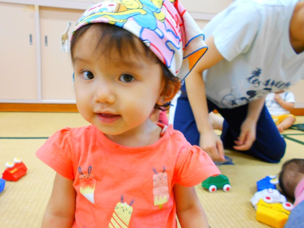 2018年08月15日 楽しいなっ!今日は、お人形や車の玩具で遊びましたよ♪「ふわふわ~気持ちいいな~~✨」と興味津々!大好きなアンパンマンのお人形を発見!!思わず、ぎゅ~っと抱きしめるお友だちも♡こちらは頭にバンダナを巻いて、「どう?似合うでしょ?♡」久しぶりに会えたお友だちも多く、笑顔いっぱいのいちご組となりました☺✨明日もたくさん遊ぼうね♪
