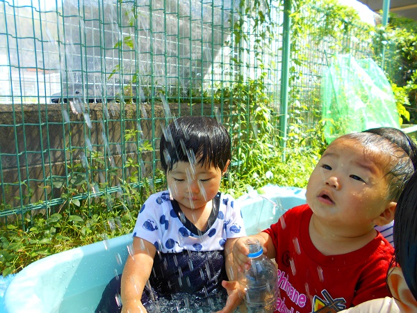 2018年08月20日 笑顔きらきら今日も元気ないちご組さん!プールに入って楽しみました♪♪上から降ってくる水に興味津々な子どもたちです...✨お部屋の中では、ボール遊び!ボール待て待て~✨ボールハウスの中から、先生とハイタッチ~♡小さいお友だちもかわいい笑顔を見せてくれましたよ♡明日もみんなのきらきらな笑顔がたくさん見れるといいな♪♪