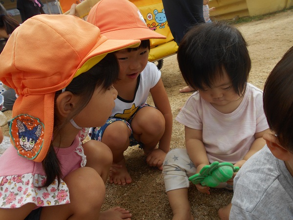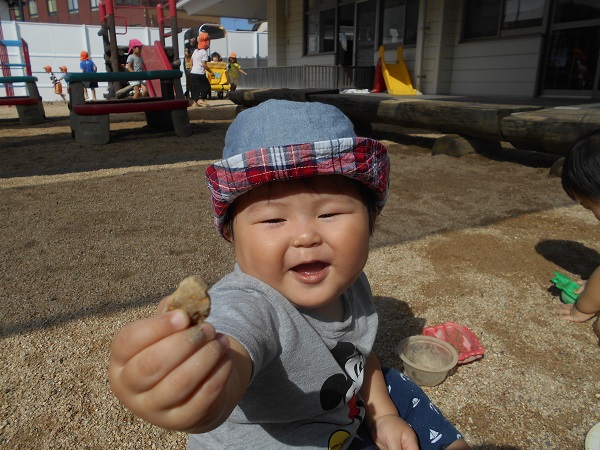 「うー!」と、見つけた石を見せたり渡したりするお友だちもいましたよ!