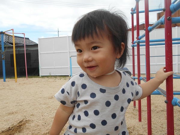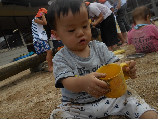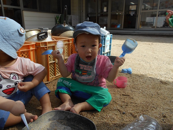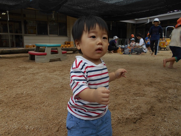 保育者に見守られて安心して砂の上に座ることができましたよ✨✨