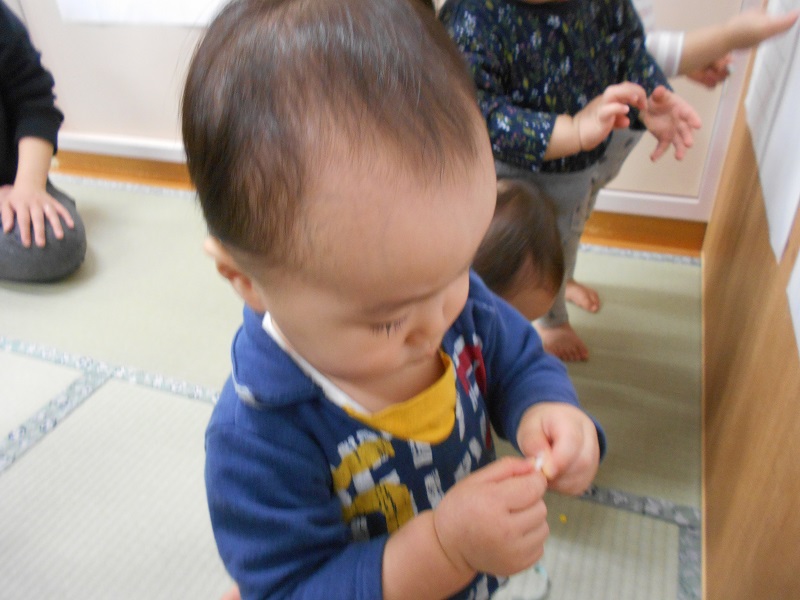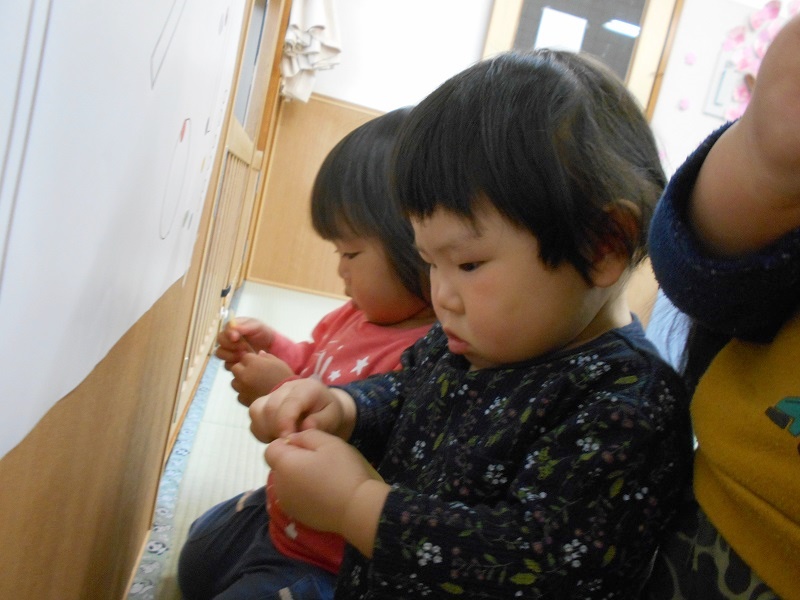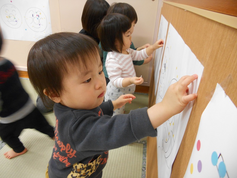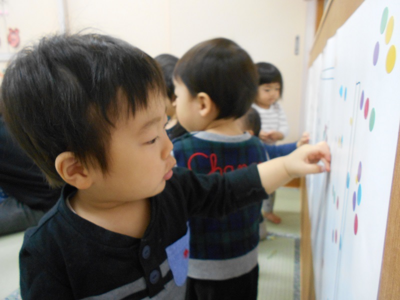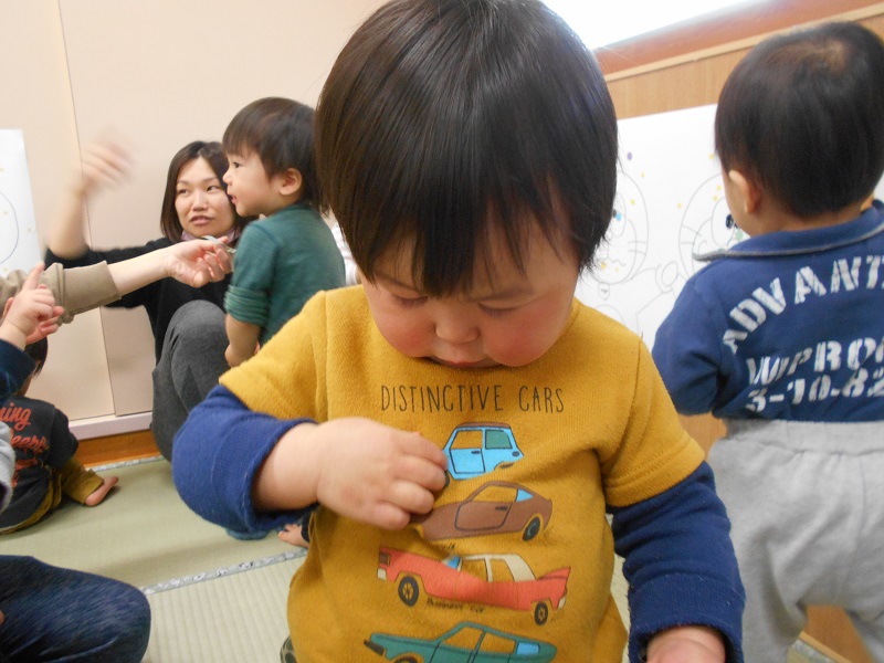 2020年03月16日 ぺったんこ☆今週も元気にスタートしたいちご組さん■シール貼りをして遊びましたよ。...とその前に、手遊びの時間♪『3びきのこぶた』の手遊びをすると、子どもたちも「トントントン!」と楽しそうに歌ってくれます■シール貼りはお手の物✨手先に集中して、器用にシールを剥がせるようになりました。「あれ、服にシールがついてる■」台紙にある形のところへ重ねて貼る子もいましたよ!今週はどんな楽しいことが待っているかな?■