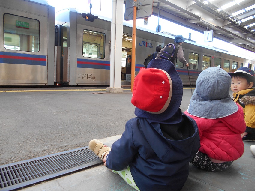 お友だちと手をぎゅーっと握って...「さあ!駅へ出発~!!」