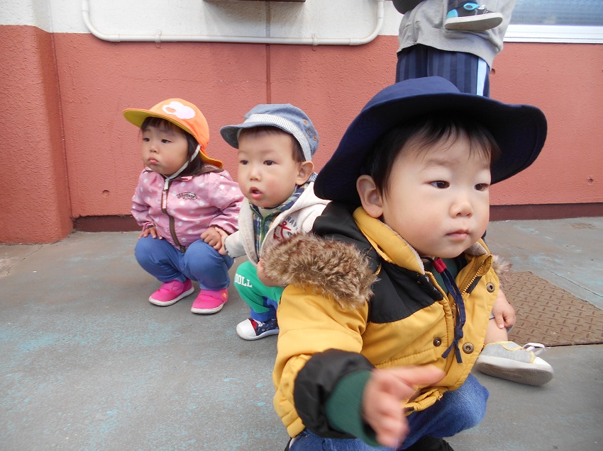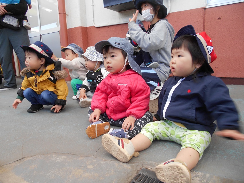 いちご組さんが散歩で見るのは初めてで、みんなピンク色の綺麗な桜に興味津々でした■