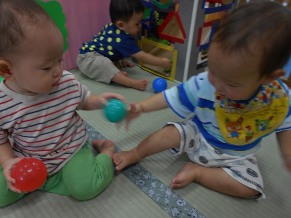 ボールをお友だちに「どうぞ」と渡していましたよ!