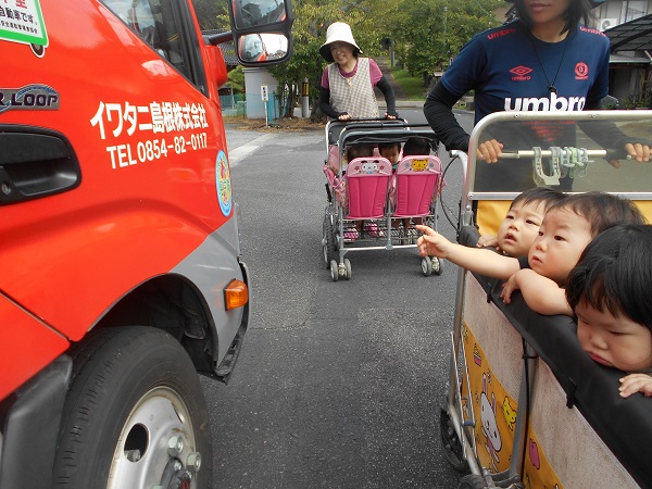 「あっちにもトラック~!!」トラックを指差しながら、見送っていました■