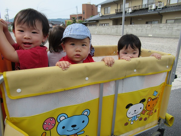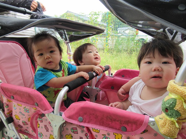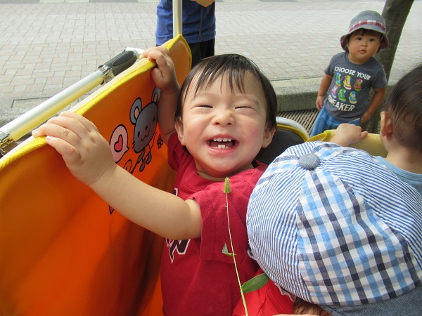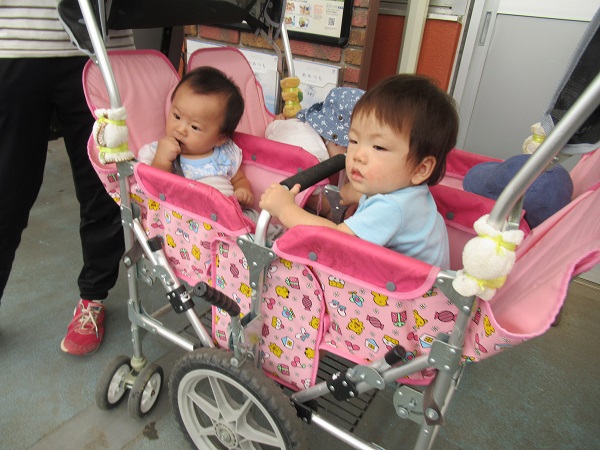 歩けるようになったり、つかまり立ちが出来るようになったお友だちは立ち乗りバギーで出発です!!