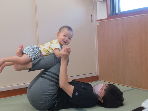 ぬいぐるみで遊んだ後は、保育者にひこうきをしてもらってこの笑顔☺