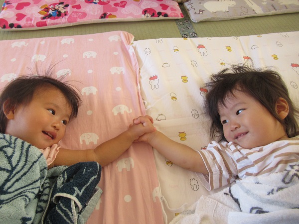 お友だちと手を繋いでお昼寝をしようとする姿がとても可愛かったです♡♡