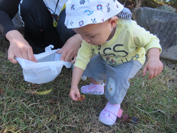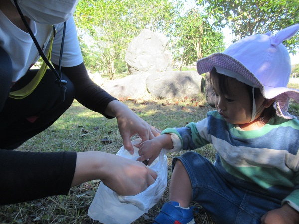 宮崎公園に着きお茶休憩をしてから、さっそく木の実探しをしました!!