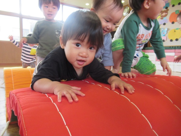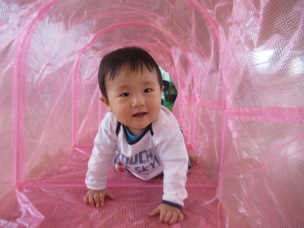 ハイハイでトンネル内を上手にくぐり抜けて行くいちご組さんでしたよ☆☆