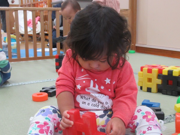 朝方は気温が低く、寒くなってきました。お部屋の中でも、いろいろな遊びをして楽しみたいと思います。