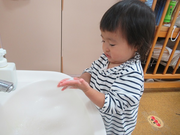 石鹸を付けてゴシゴシと手を綺麗に洗います。