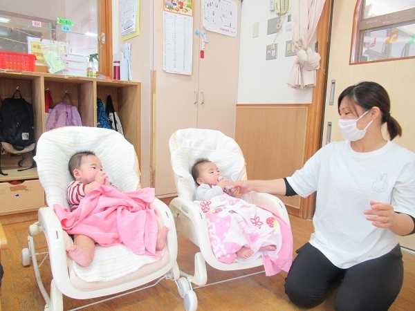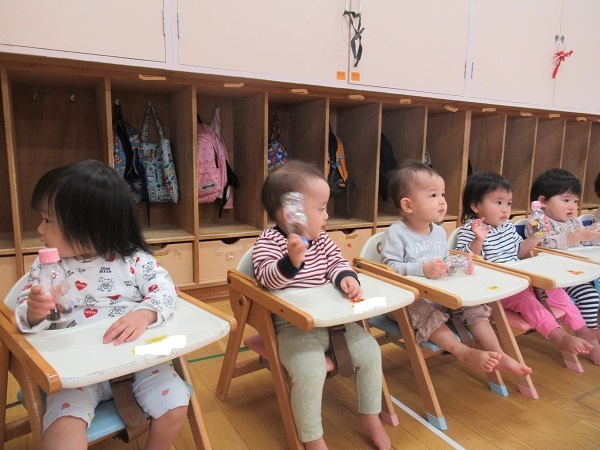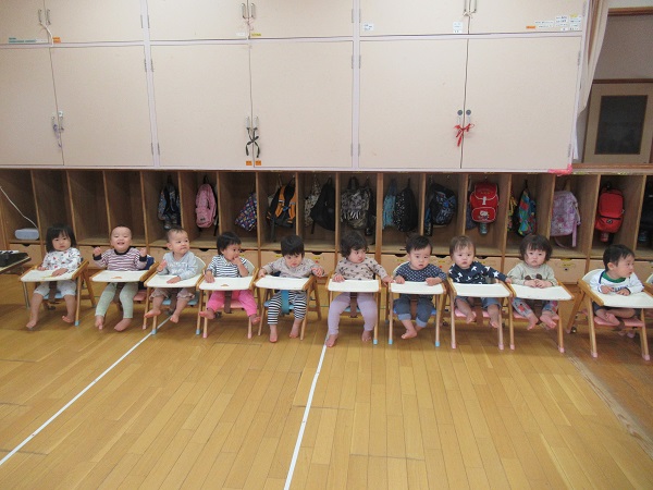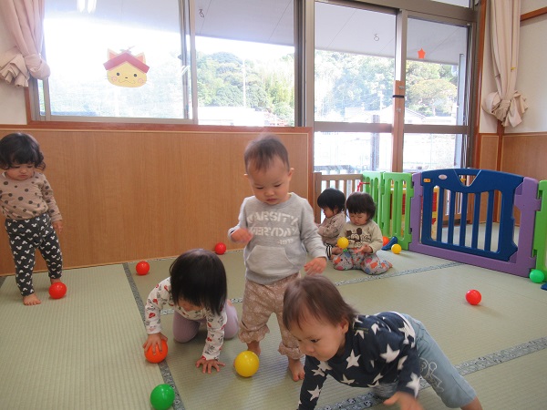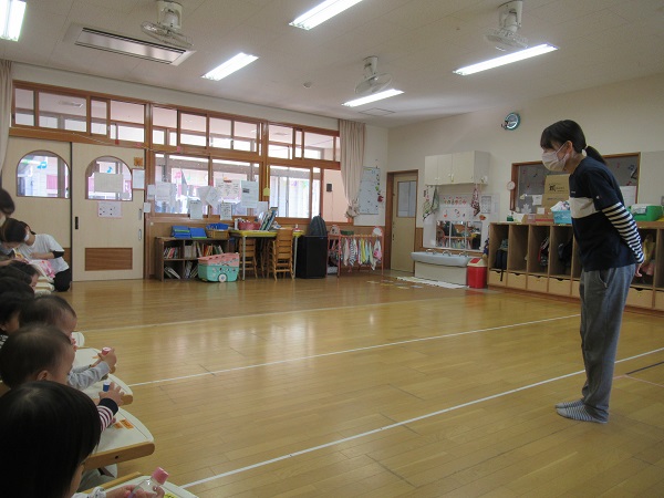 2021年11月04日 リハーサルをしました11月6日(土)の発表会に向けてリハーサルをしました。椅子に座って真剣な表情のいちご組さんです。保育者のお話を上手に聞き、練習することができました!作品展で作ったマラカスを使って発表をします。どんな発表なのかは当日のお・た・の・し・み♪練習の後は、ボール遊びで身体を動かしました。発表会、楽しみだね。