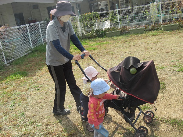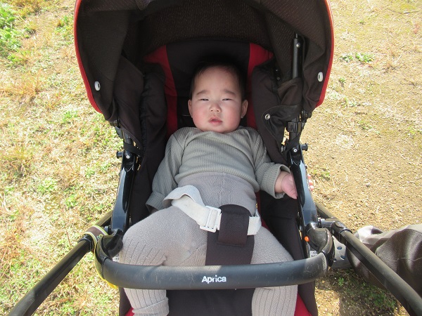 小さいお友だちはベビーカーに乗って、のんびりお散歩■