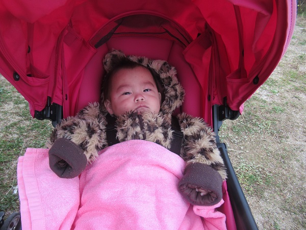 帰りに散歩車を見ると、お客さんがいました。