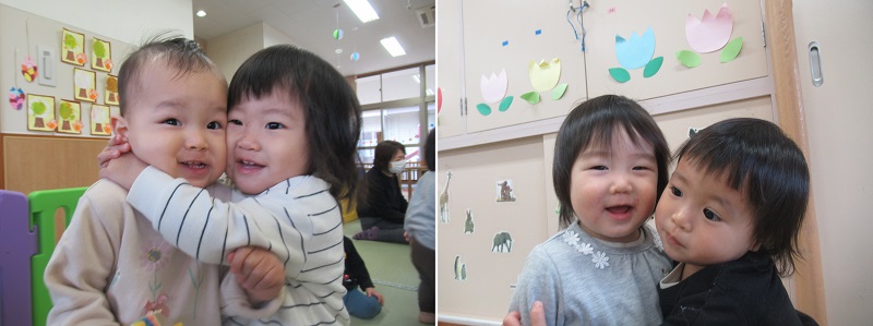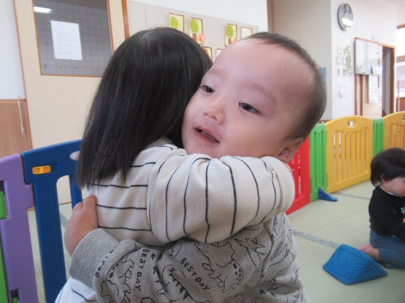 お部屋で遊んでいると、ぎゅーっとお友だち同士で抱き合う可愛らしい姿が・・・♡♡
