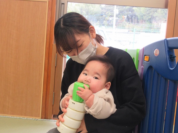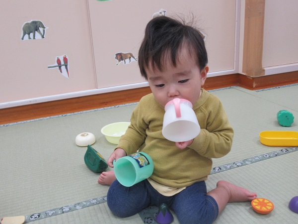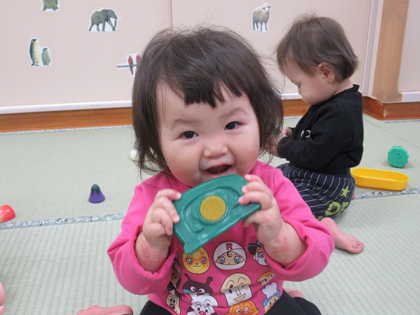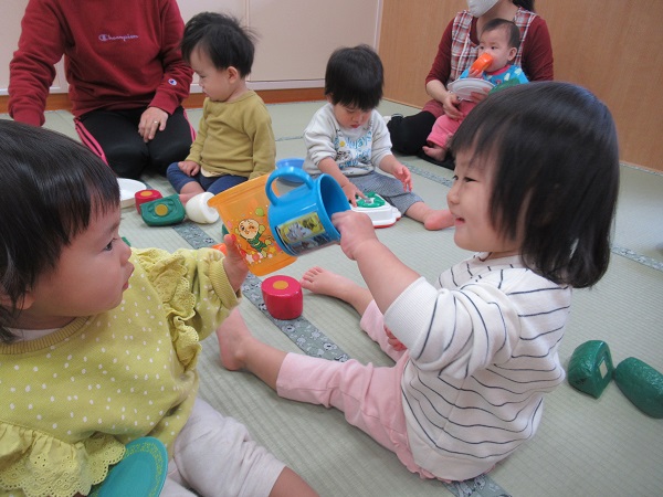 遊びの中で「ちょうだい」とお友だちに言って、お友だちが「どうぞ」と玩具を渡している姿も見られました。少しずつですが、お友だちとの関わり方も上手に出来るようになっています♡