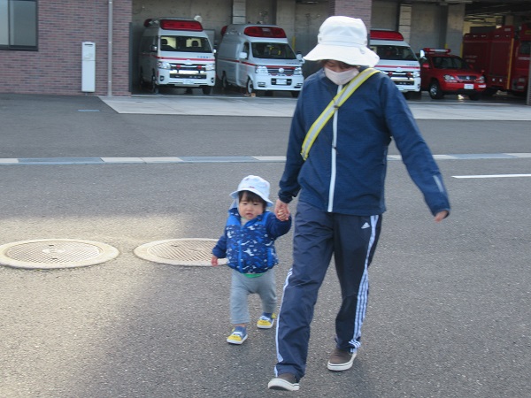 消防車と救急車の見学の後は園まで歩いて帰ります。